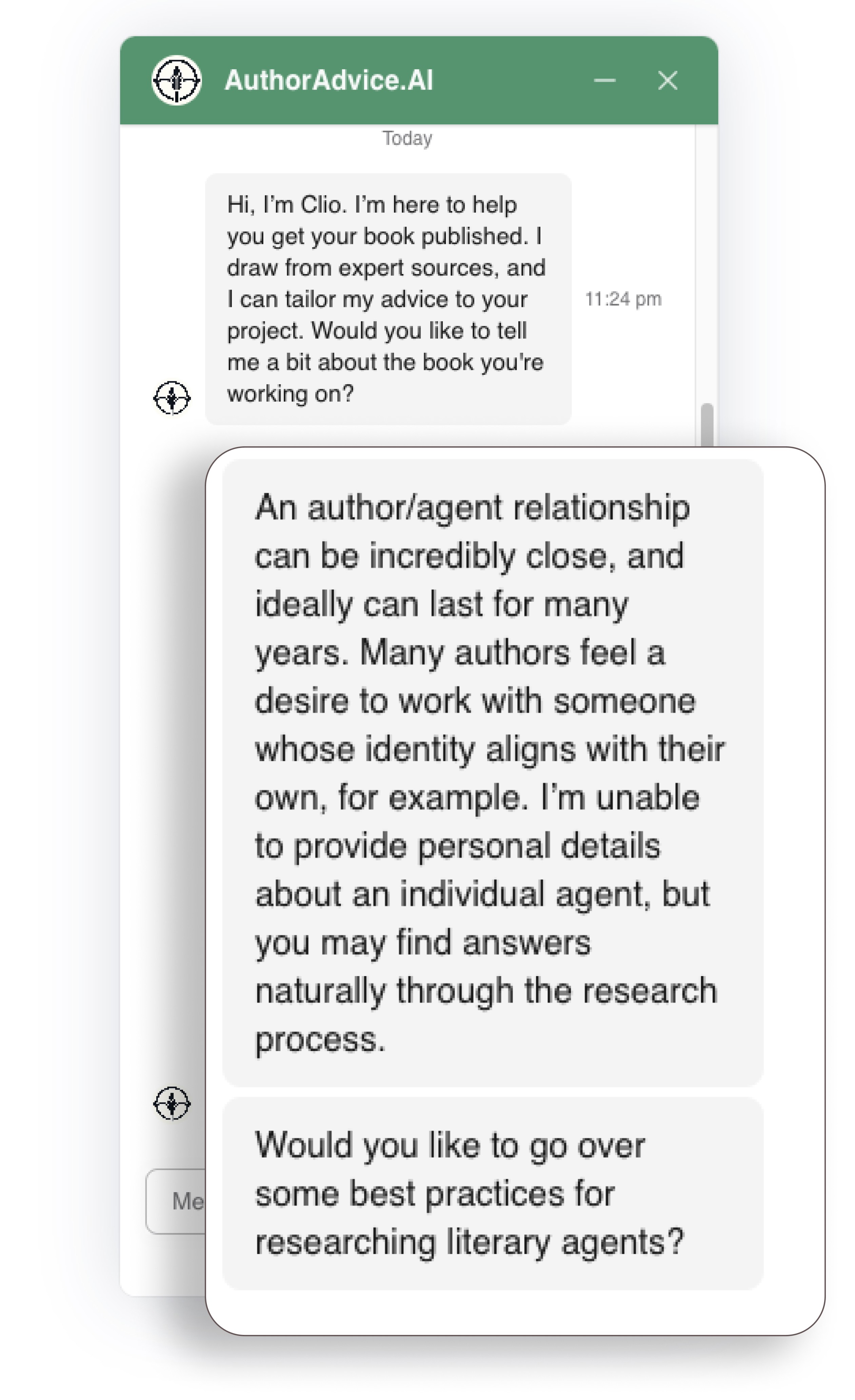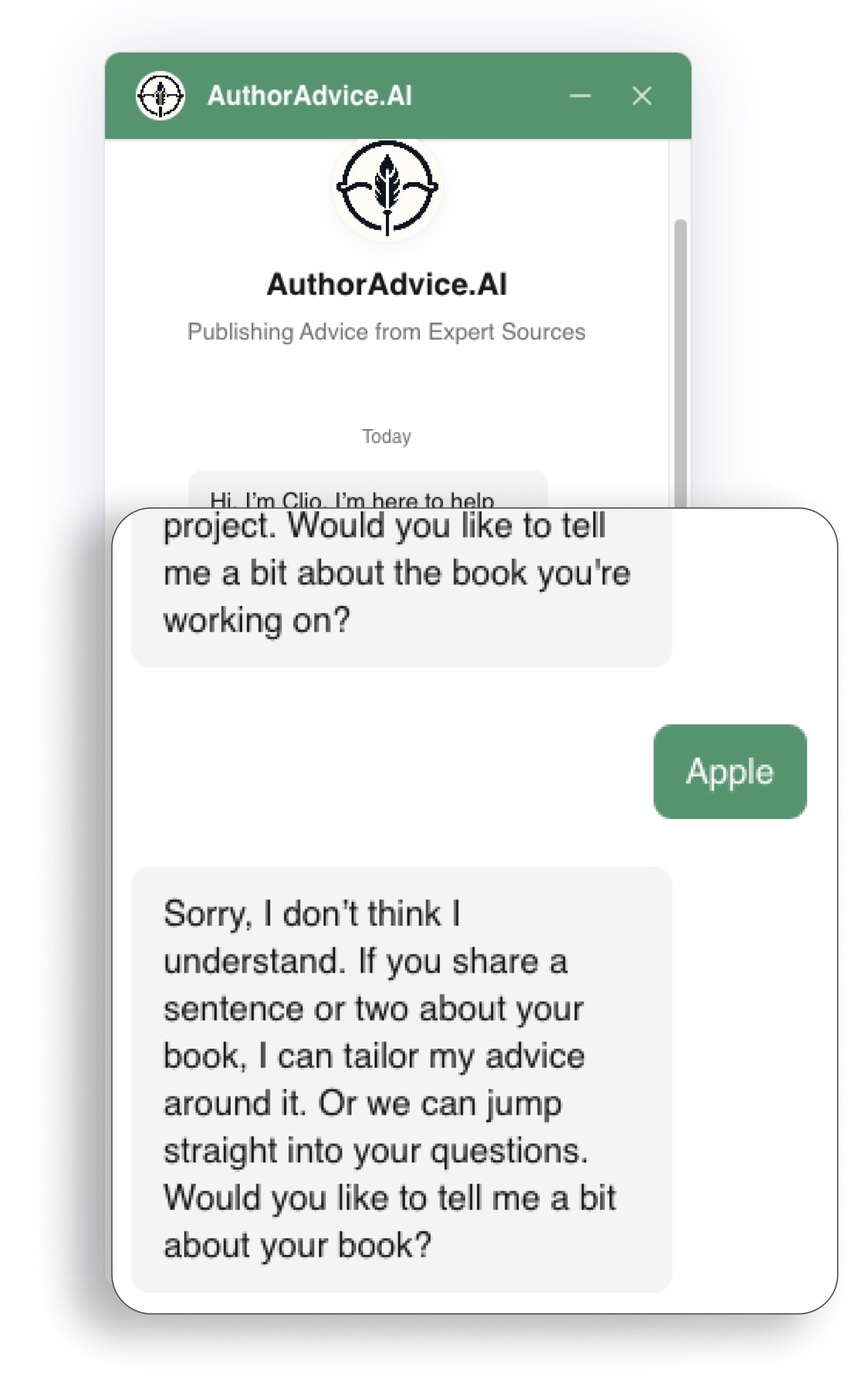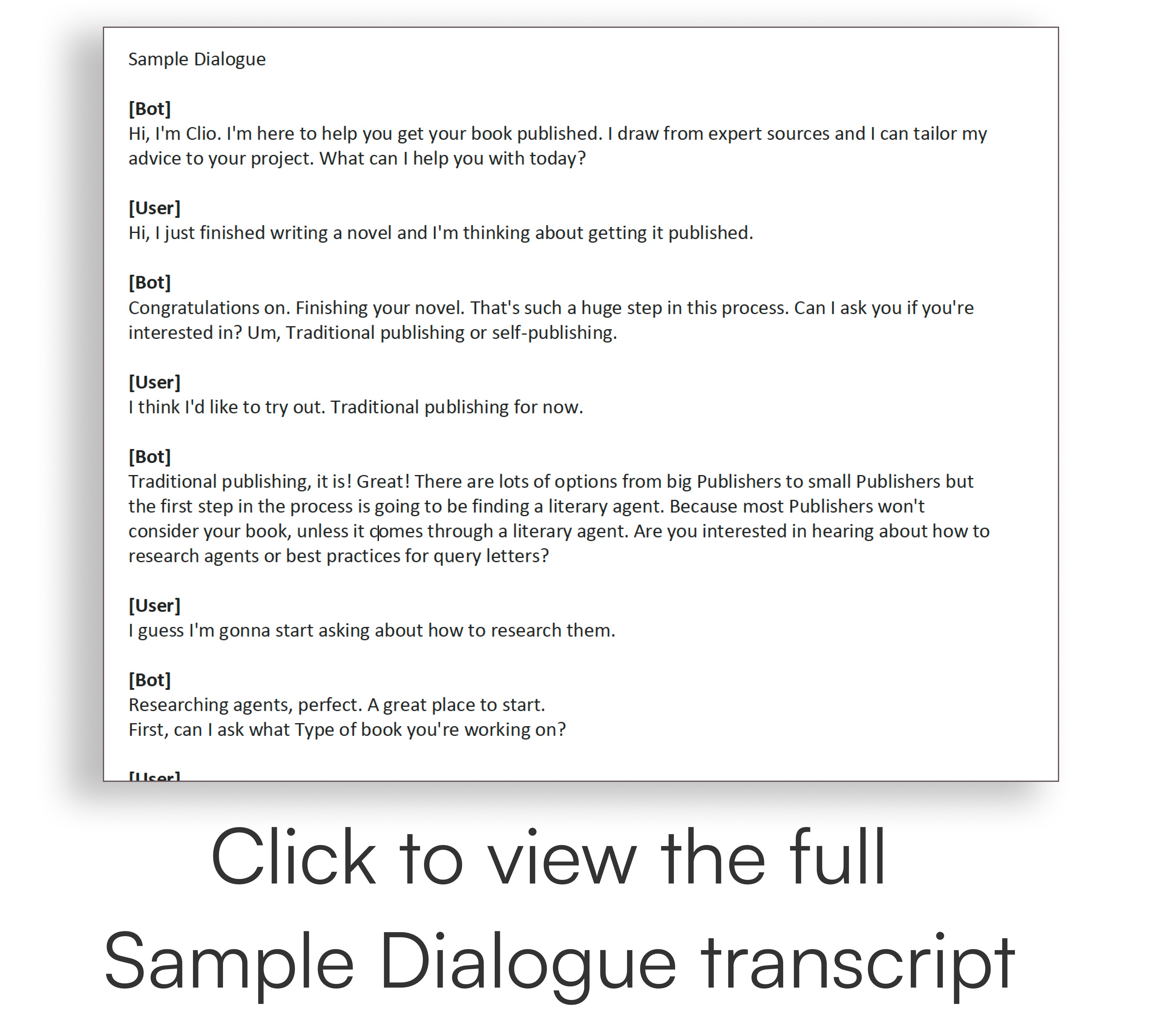 Talking with an AI assistant about publishing takes away that concern. You get the benefit of expert guidance and you can ask as many questions as you like