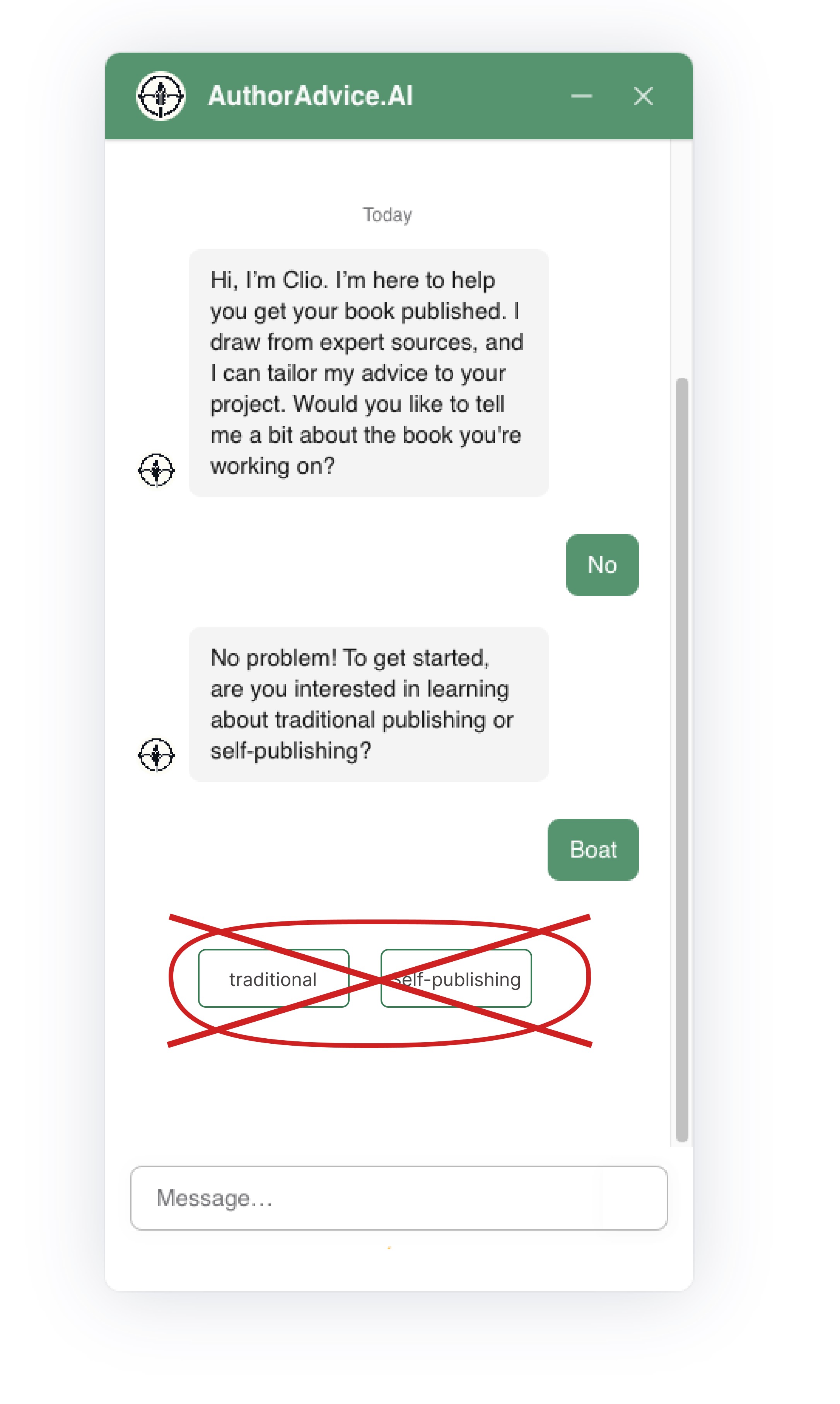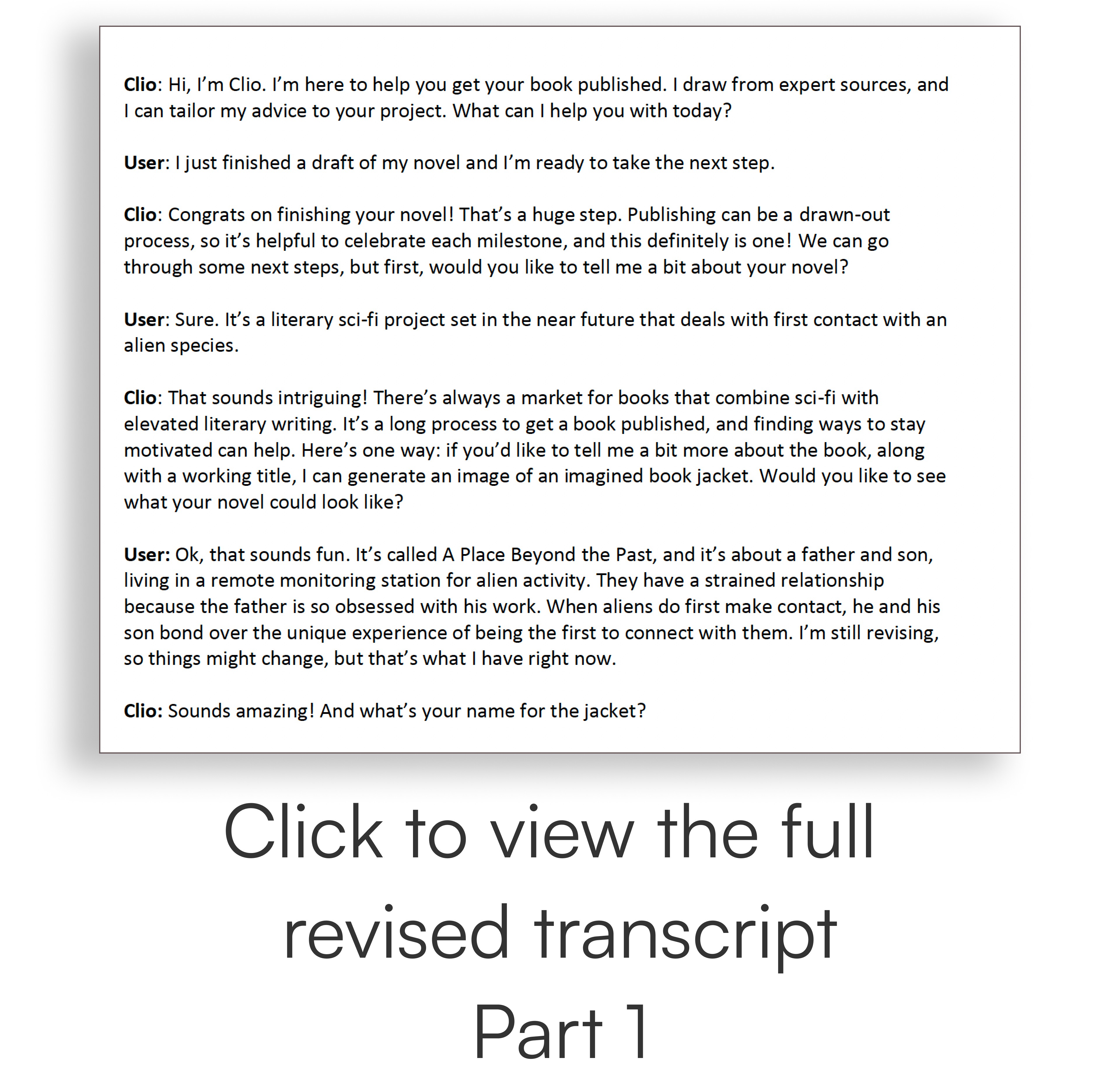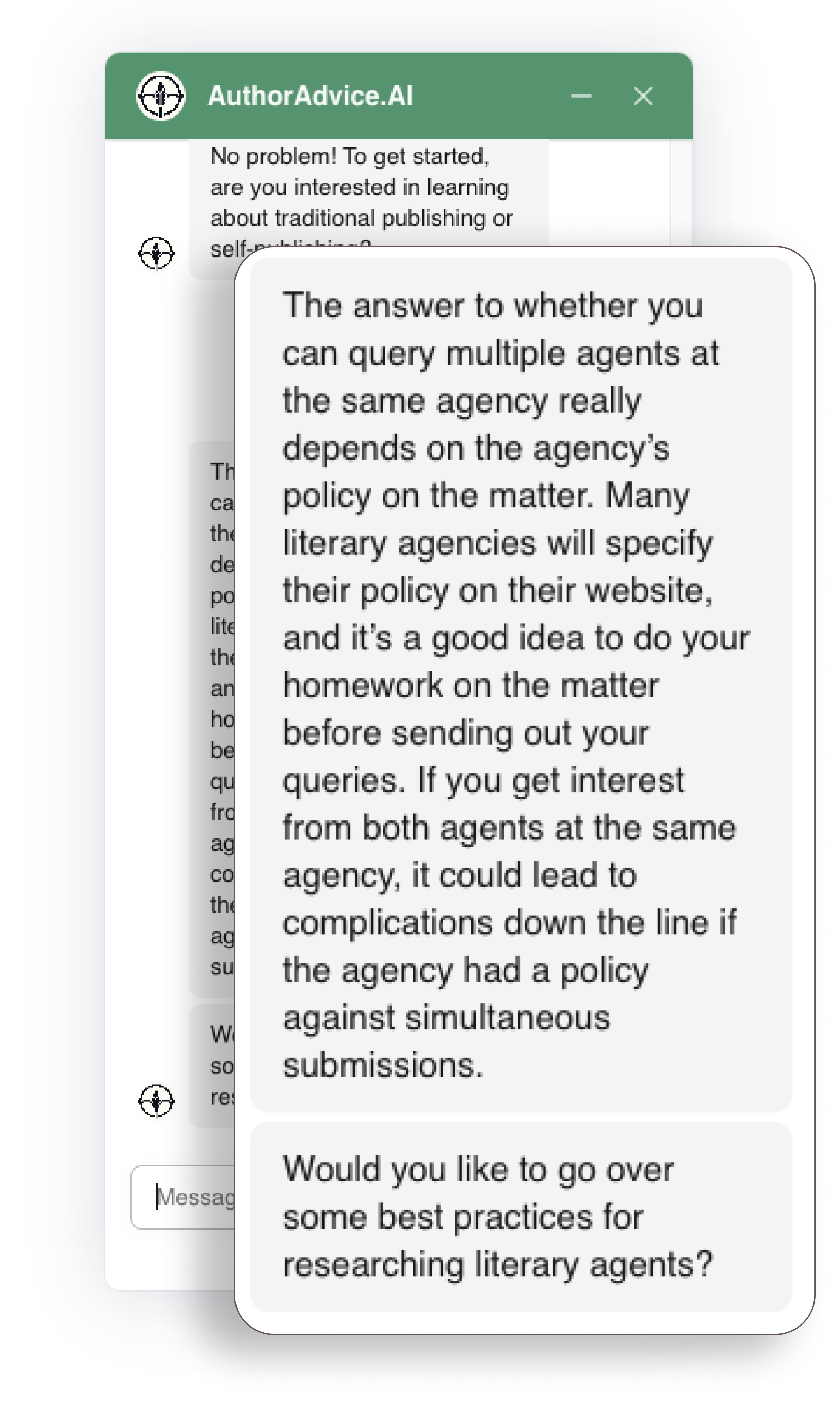 Talking with an AI assistant about publishing takes away that concern. You get the benefit of expert guidance and you can ask as many questions as you like