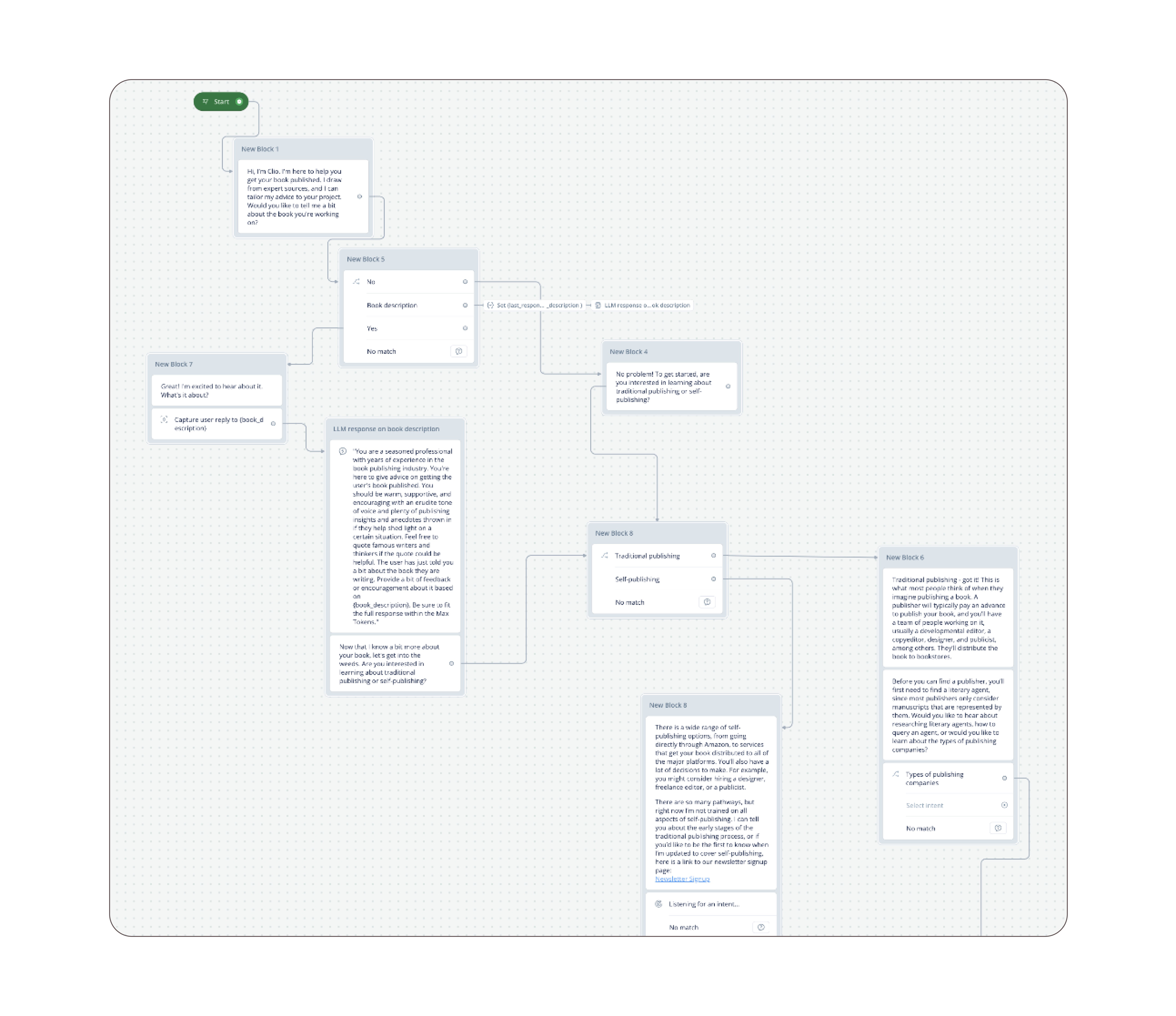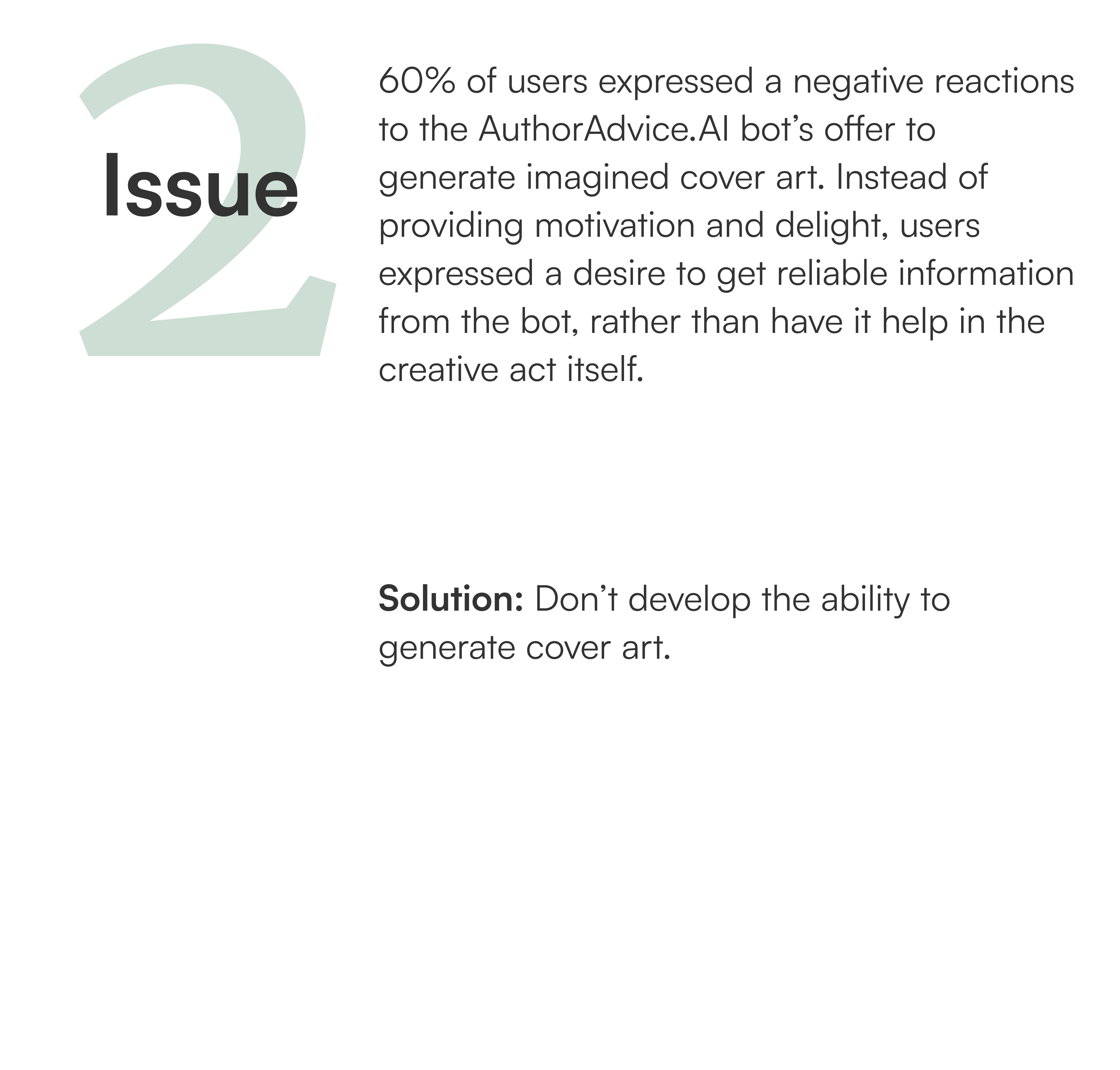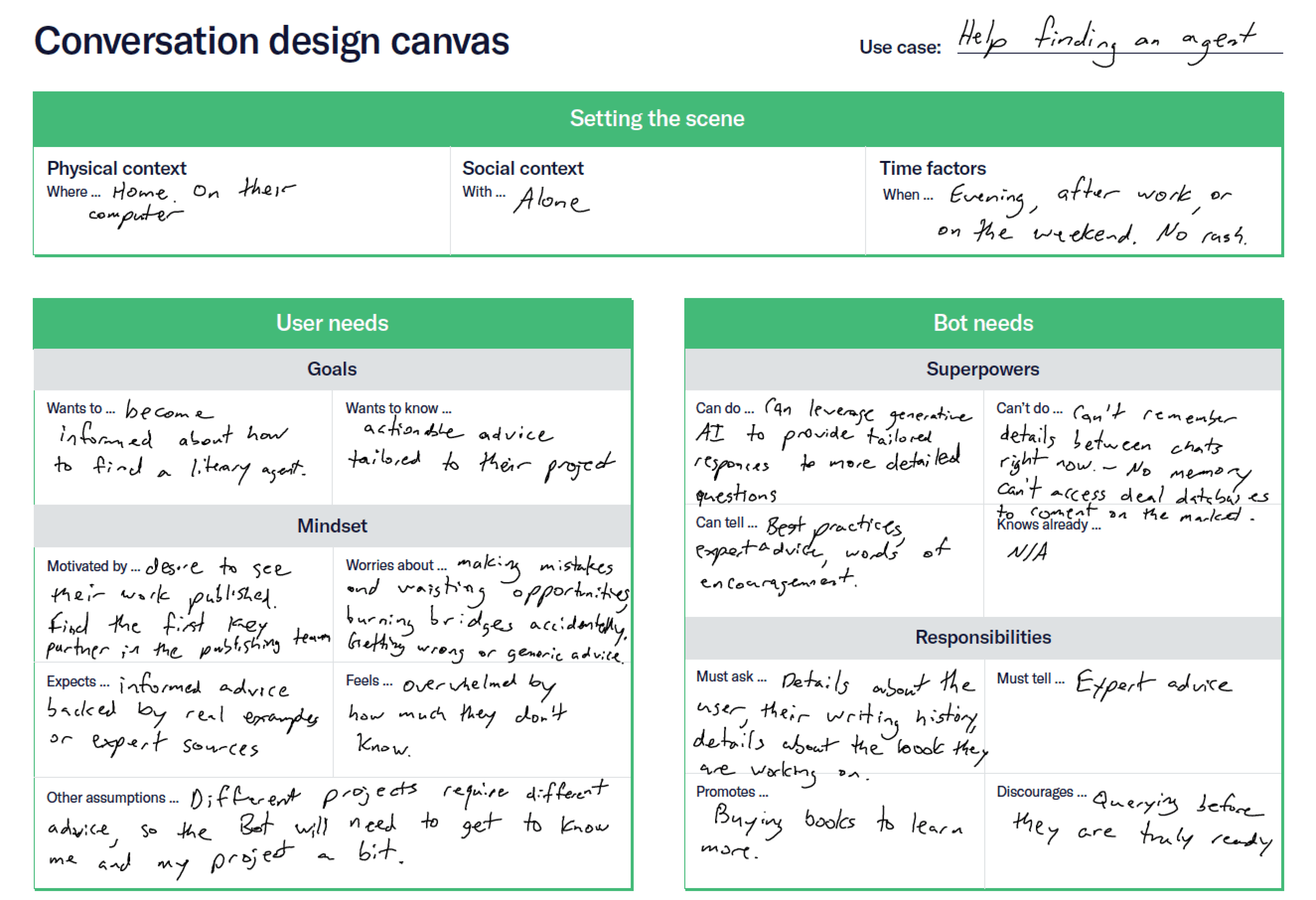Each book is different, and the best advice is tailored to each individual project. Using generative AI could provide that bespoke experience, but it would sacrifice the reliability and expert sourced advice of a more designed conversational experience.