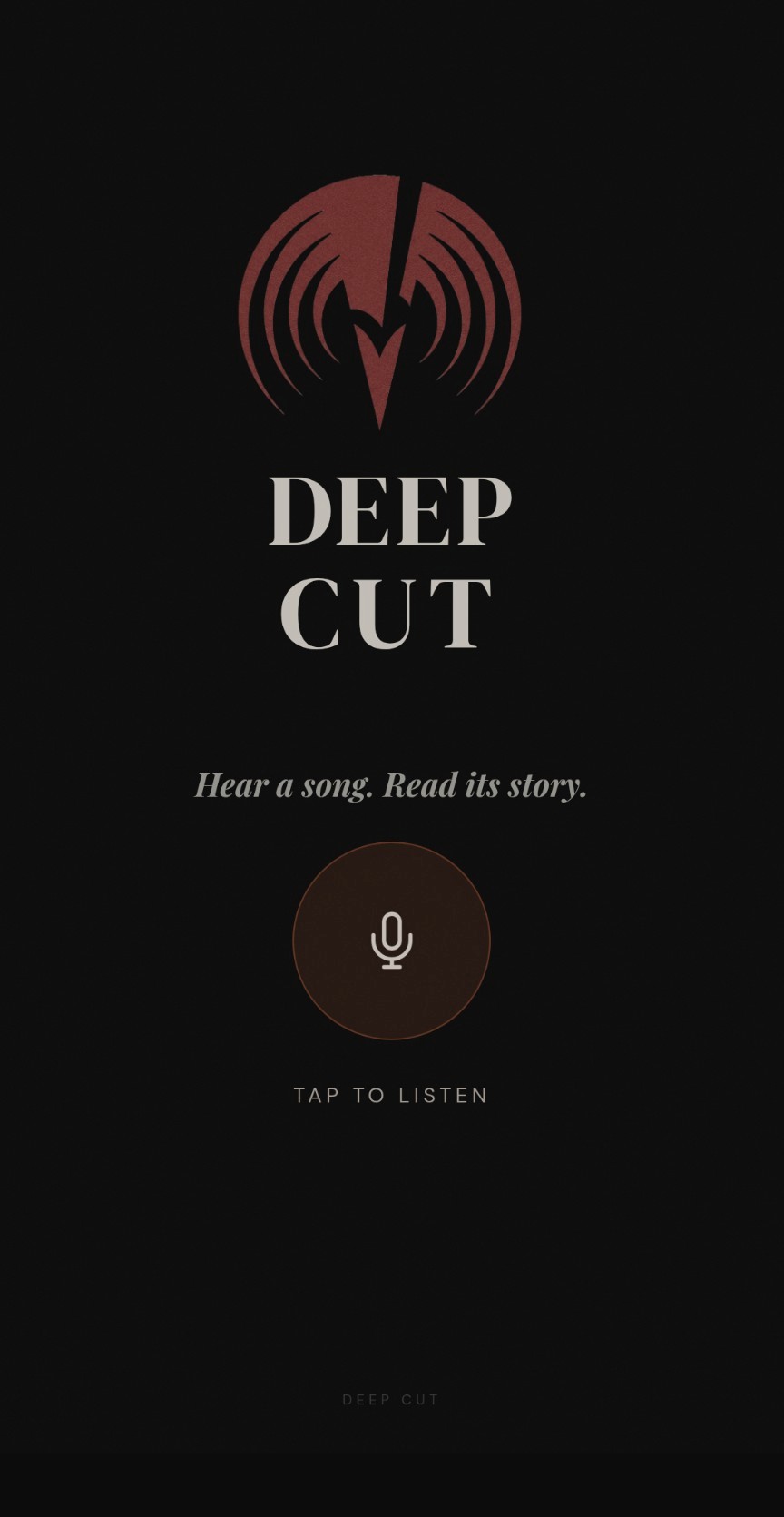 Deep Cut is a mobile-first music application that identifies any song playing in the room and generates a behind-the-scenes editorial on the spot: band history, the story behind the track, critical reception, and deep lore. Start listening and then read the story behind the song.
