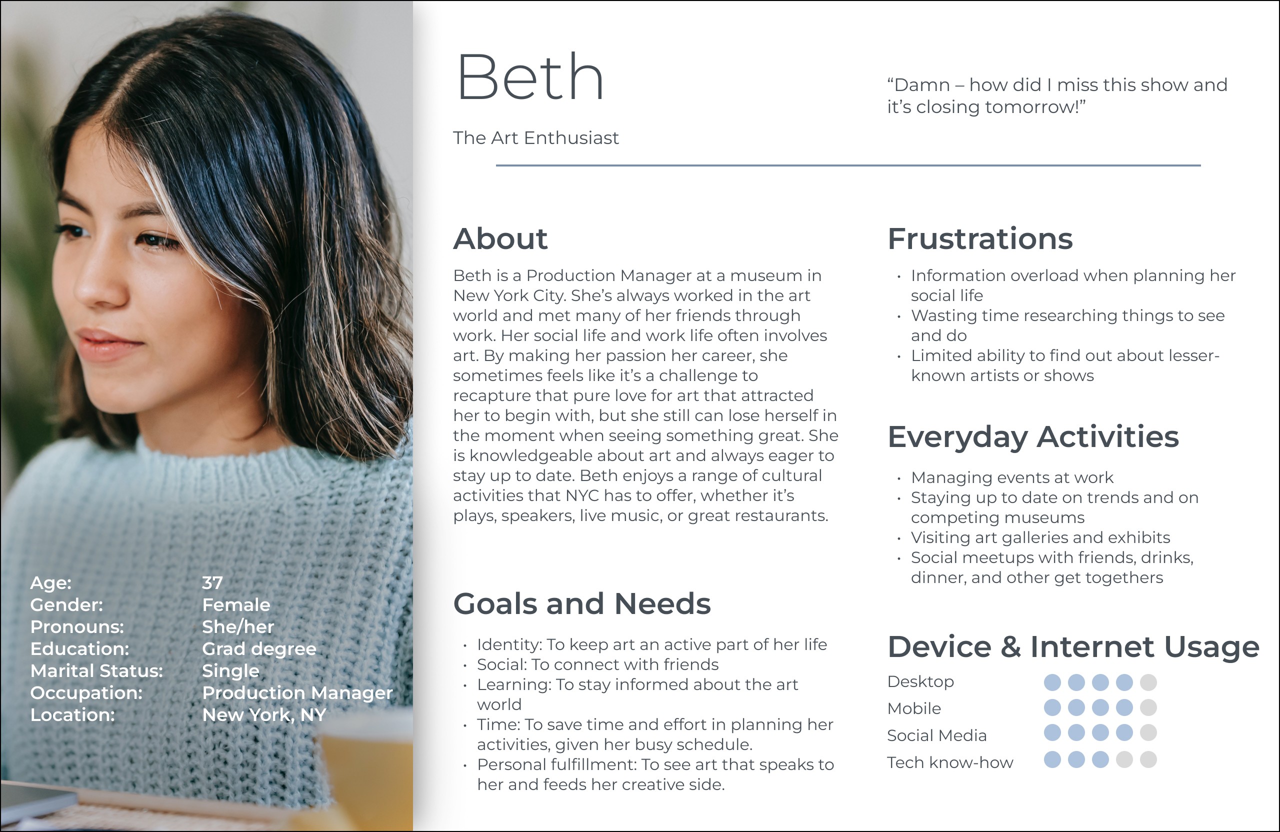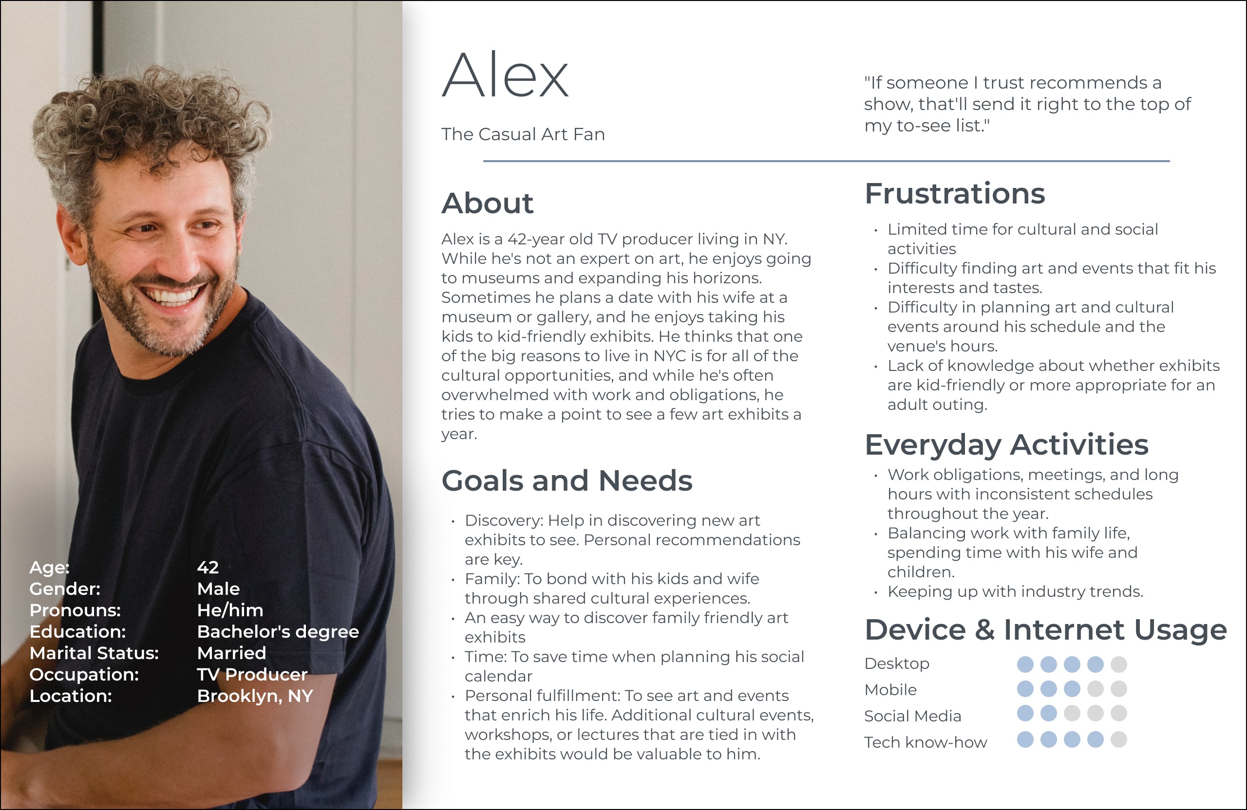 Personas: Clarified the needs of casual art fans and art enthusiasts