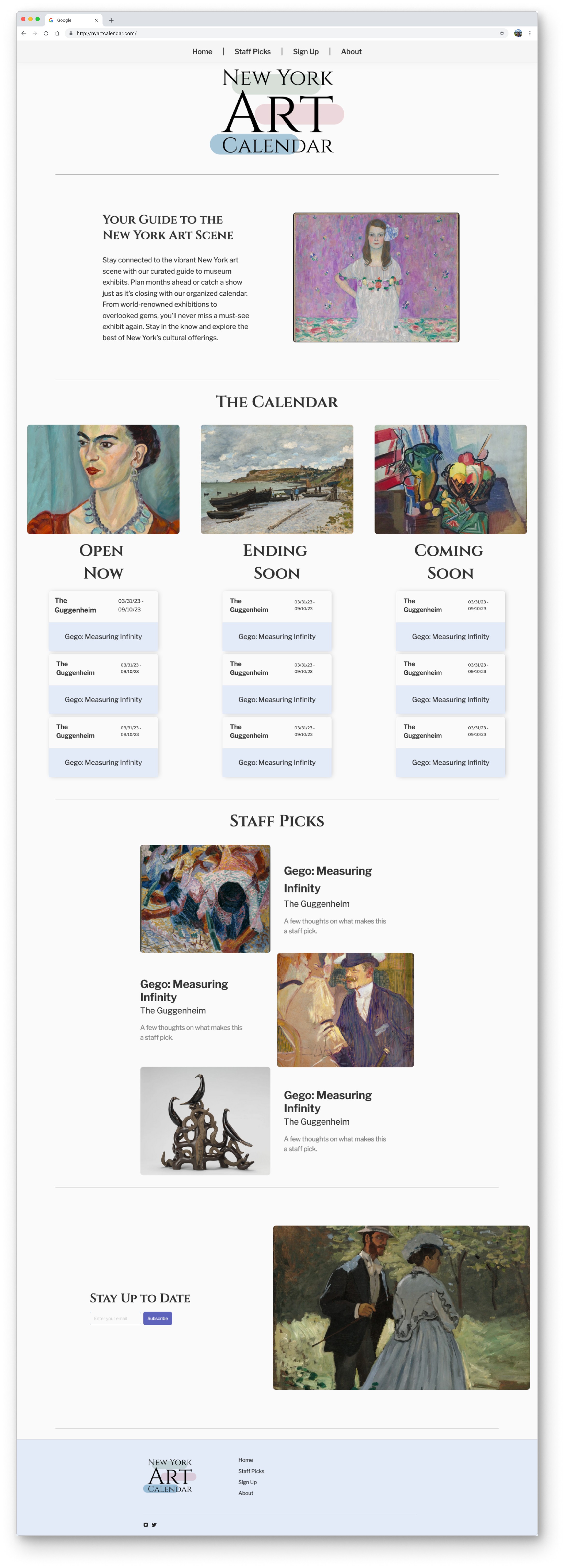 I also looked at museum and gallery websites. The New York Art Calendar should be in visual conversation with those sites.