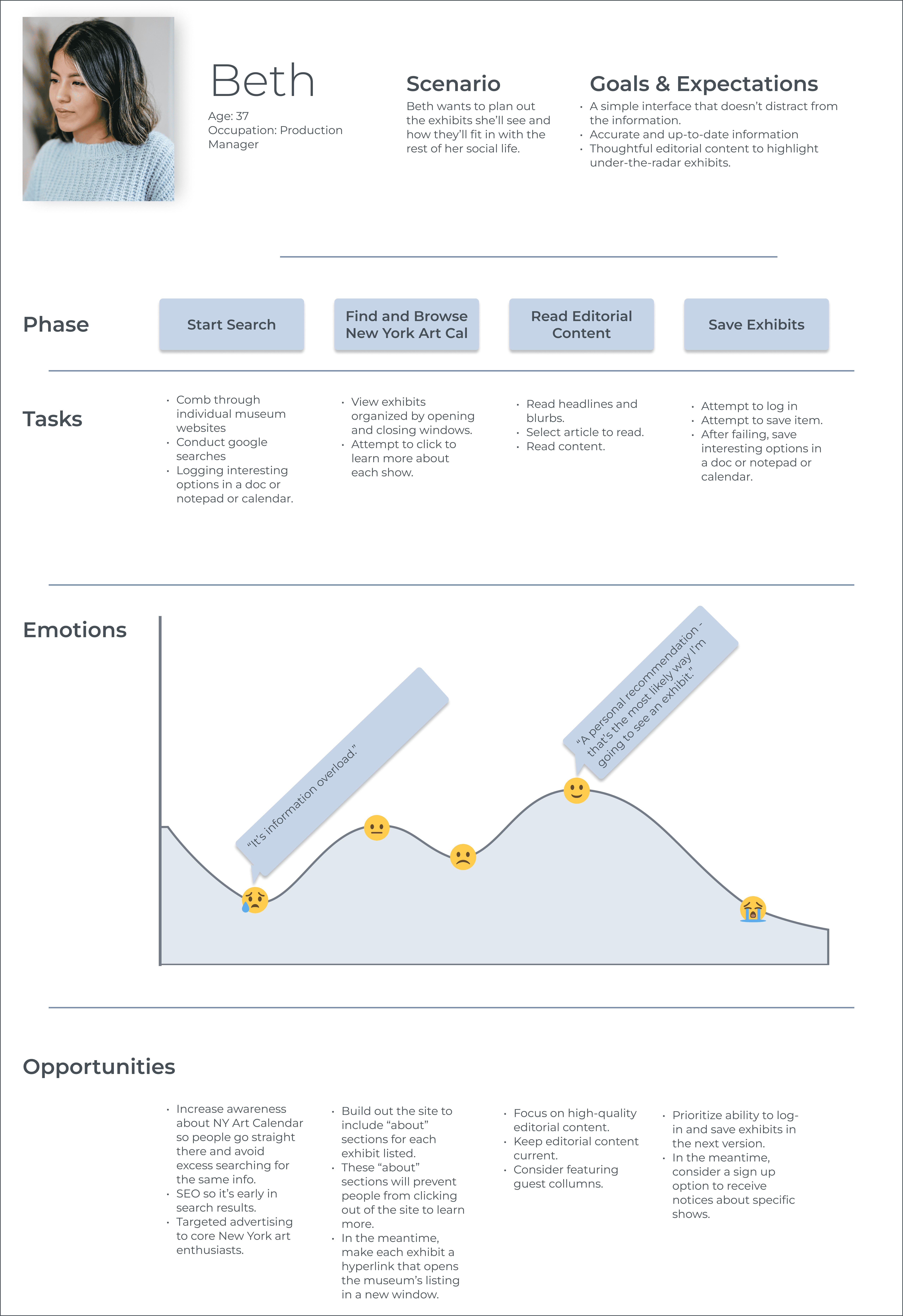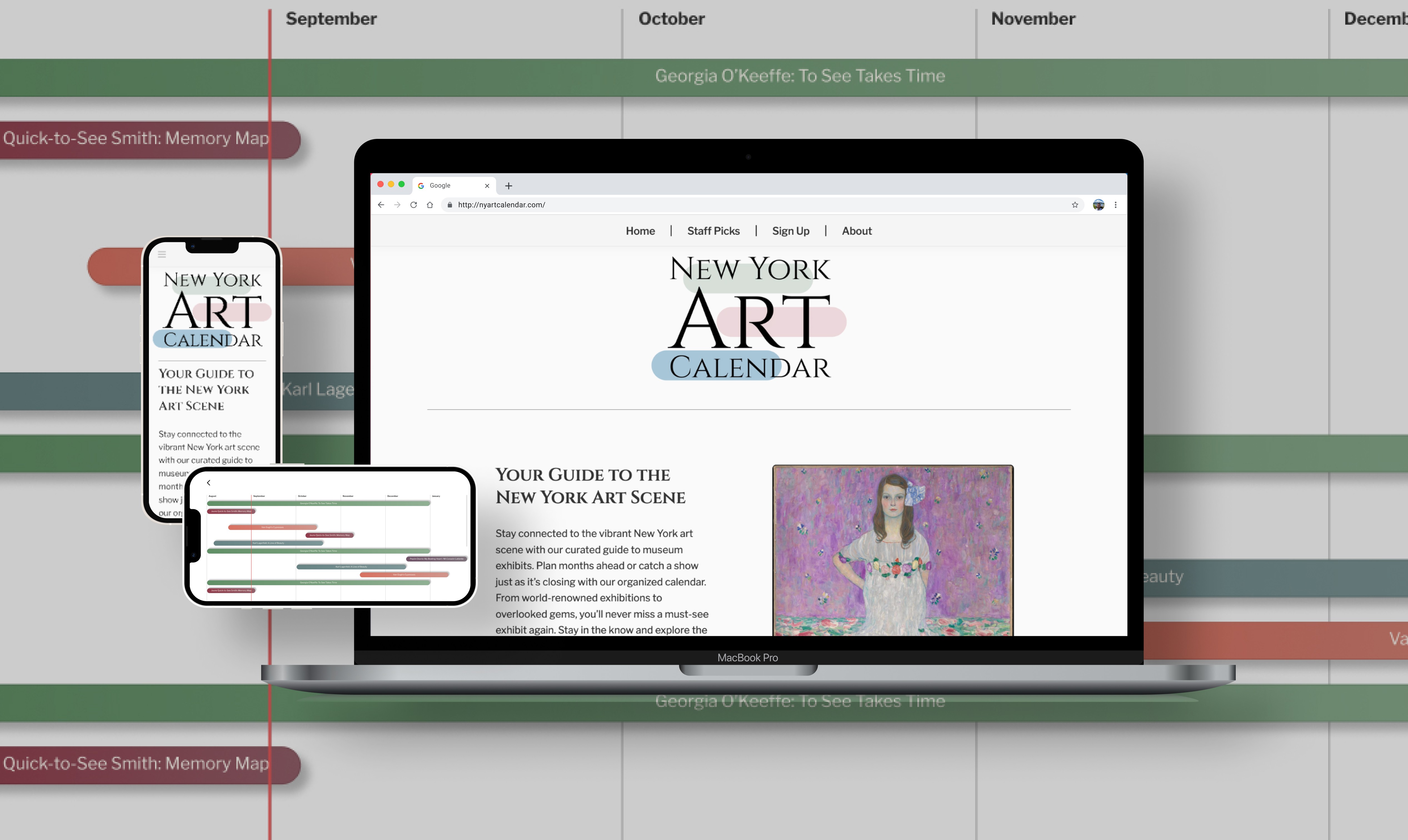 New York art lovers need a way to keep track of multiple exhibits from different museums and galleries because most websites focus on the art and not the date ranges. It can be tough for users to keep track of timelines from shows across all the various galleries and museums.
